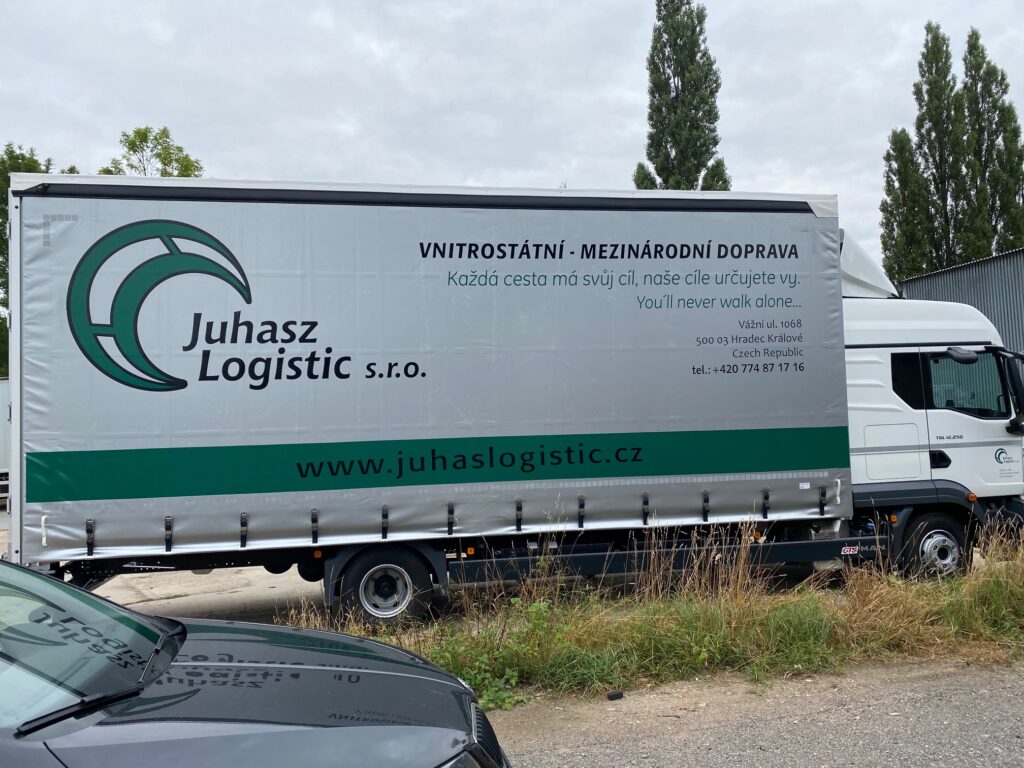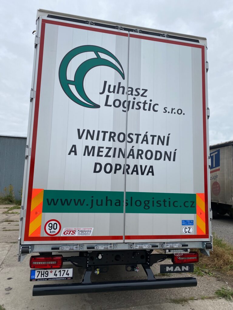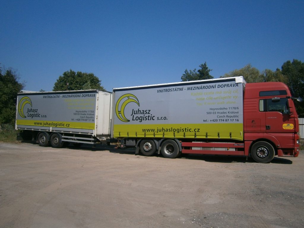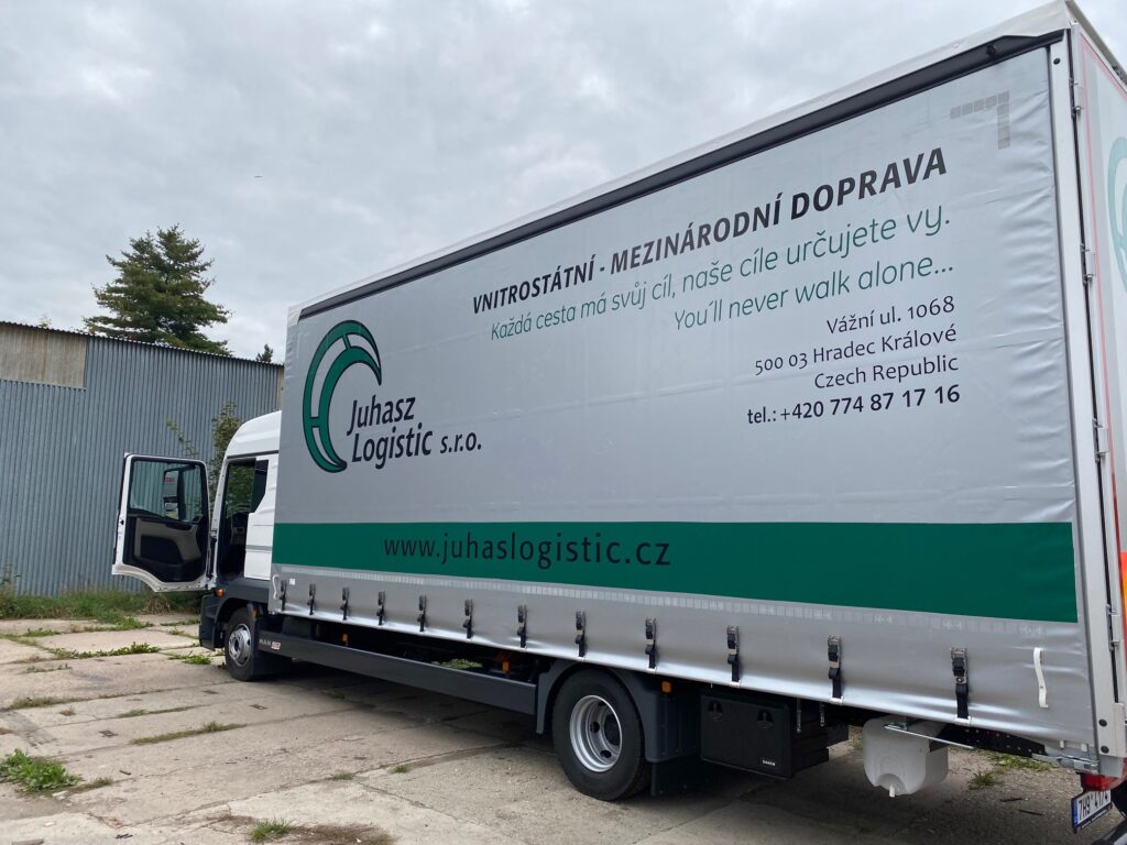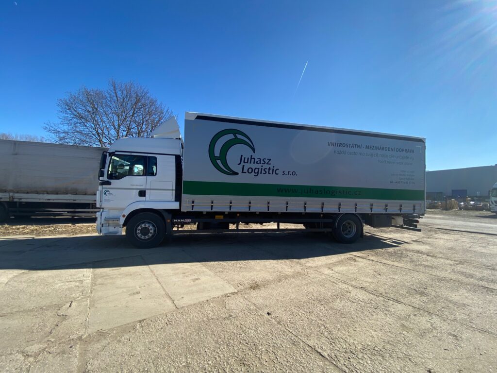 Solo vozidlo MAN, rozměry 8,90 m délky, 2,48 m šířky a 2,75 m výšky, nosnost do 9,5t, podle možností a přání zákazníka a to jak v rámci ČR, tak po celé Evropské Unii i mimo ni.